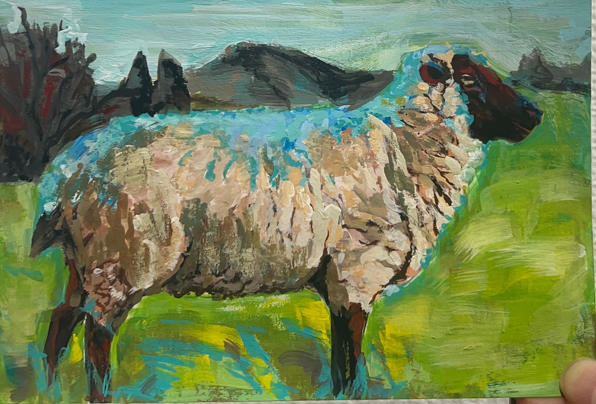 ハガキサイズ アクリル絵の具で着色